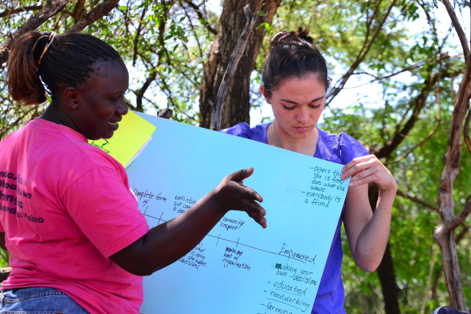With one woman drawing the “empowered woman”, the others were encouraged to describe how this woman behaves: