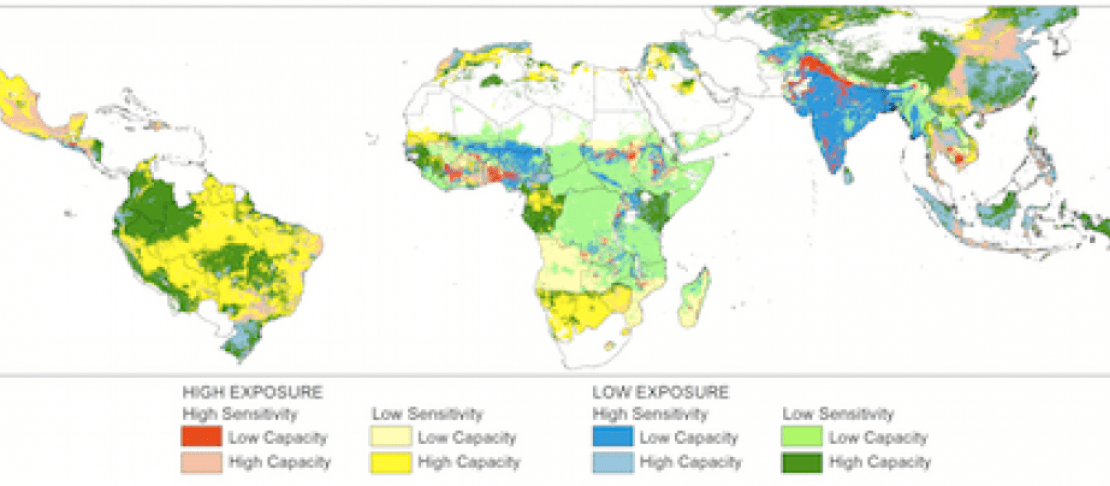 The study also shows that some areas today have a “low sensitivity” to the effects of climate change only because there is not a lot of land devoted to crop and livestock production. But agriculture intensification would render them more vulnerable, adding a wrinkle, for example, to the massive effort underway to rapidly expand crop cultivation in the so-called “bread-basket” areas of sub-Saharan Africa.