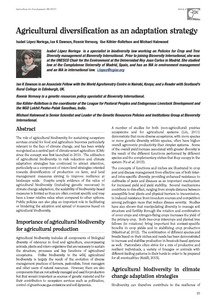 López Noriega I, Dawson IK, Vernooy R, Köhler-Rollefson I, Halewood M. 2017. Agricultural diversification as an adaptation strategy. Agriculture for Development 30:25-28.