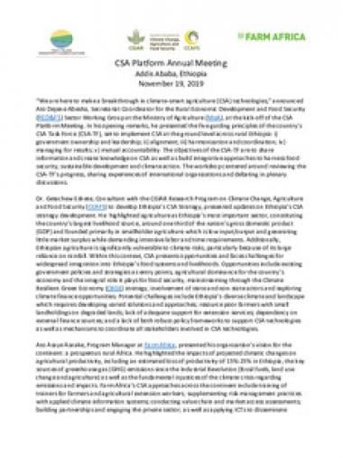 CCAFS. 2019. CSA Platform Annual Meeting - November 2019. Addis Ababa, Ethiopia: CGIAR Research Program on Climate Change, Agriculture and Food Security (CCAFS).