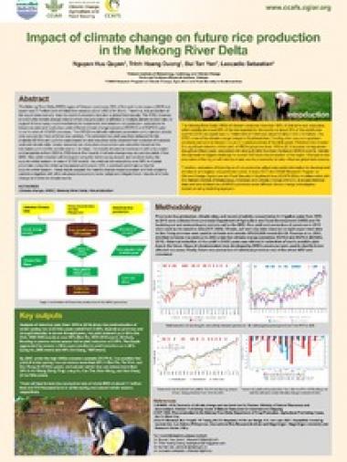 Nguyen HQ, Trinh HD, Bui TY, Sebastian L. 2018. Impact of climate change on future rice production in the Mekong River Delta. Poster paper presented in the 5th International Rice Congress on 15-17 October 2018 in Singapore. Wageningen, Netherlands: CGIAR Research Program on Climate Change, Agriculture and Food Security (CCAFS).