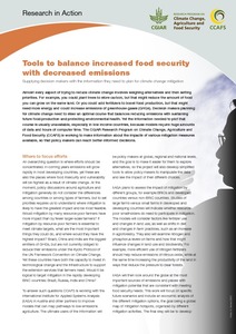 CCAFS. 2013. Tools to balance increased food security with decreased emissions: supplying decision makers with the information they need to plan for climate change mitigation. Research in Action. Copenhagen, Denmark: CGIAR Research Program on Climate Change, Agriculture and Food Security (CCAFS).